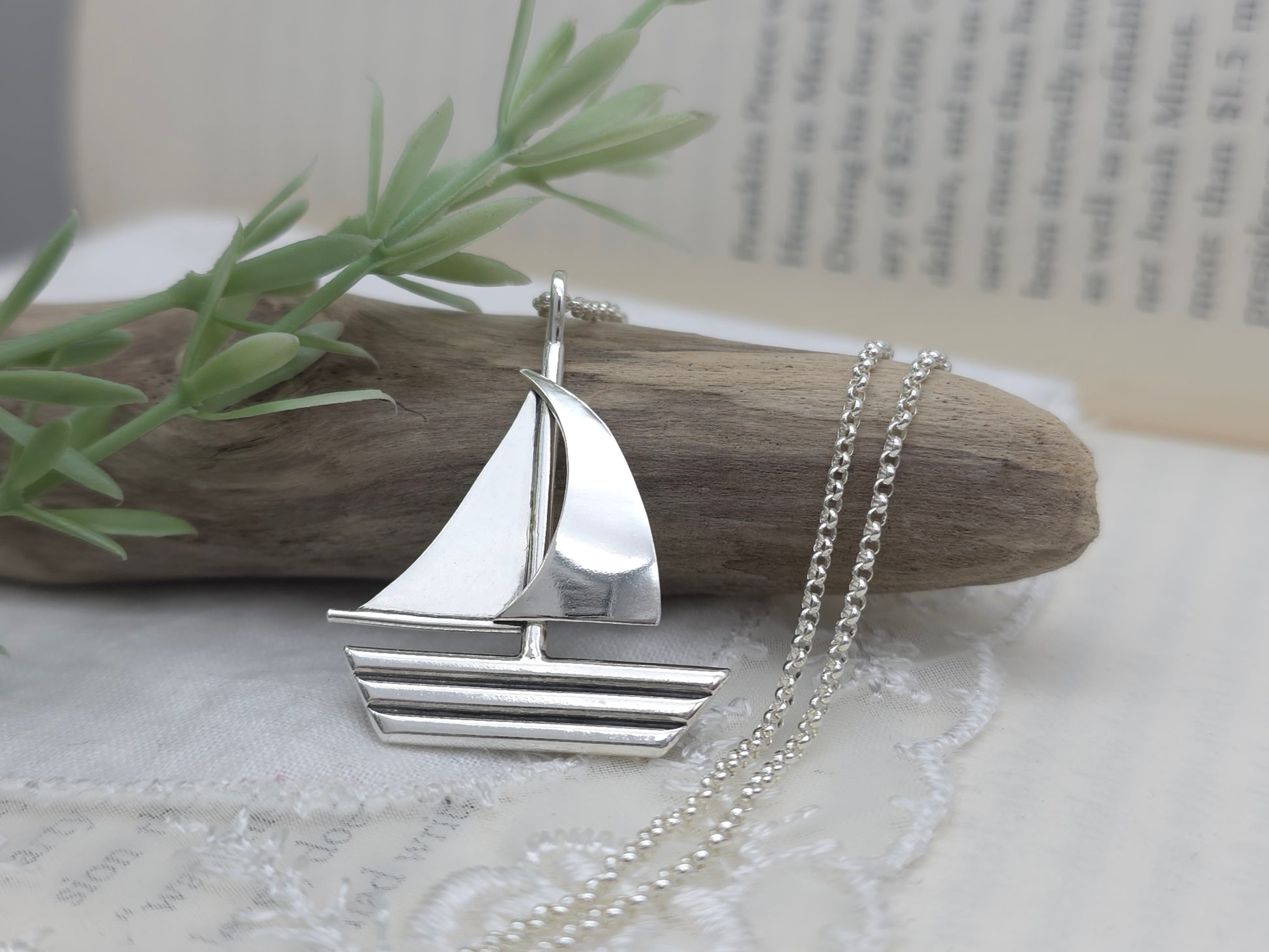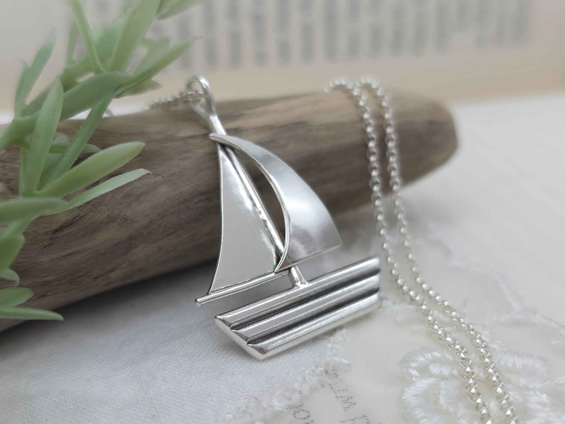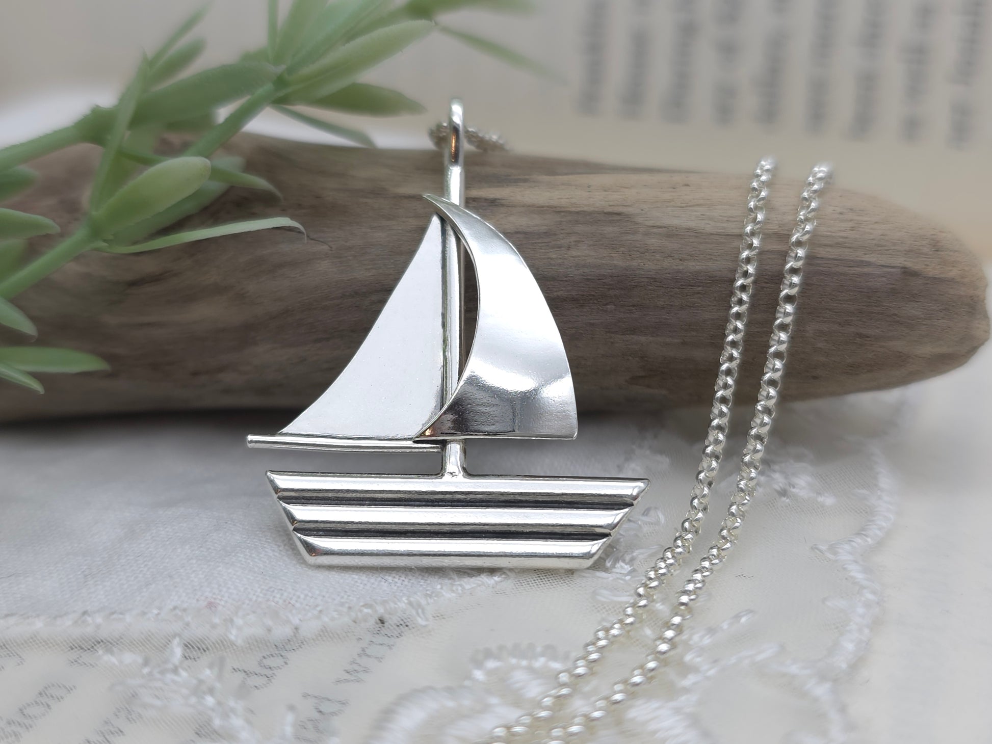 Hand forged entirely from solid sterling silver, this pendant features a sculptural form with its beautifully shaped wind-filled sail and flowing lines that brought together create this stunning sailboat.