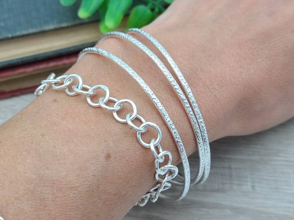 Sterling Silver Bangle Bracelet / Thin Bangles / Dainty