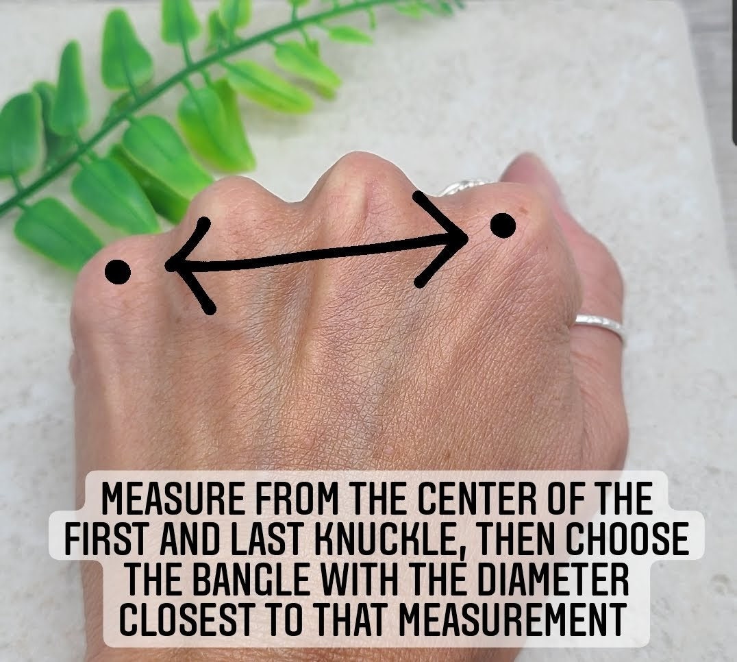 •Measure your hand. Simply make a fist and measure from the center of your first knuckle to the center of you last knuckle and select the size that is closest to that measurement. Picture for example on how to measure above. Please let me know if you have any other questions!